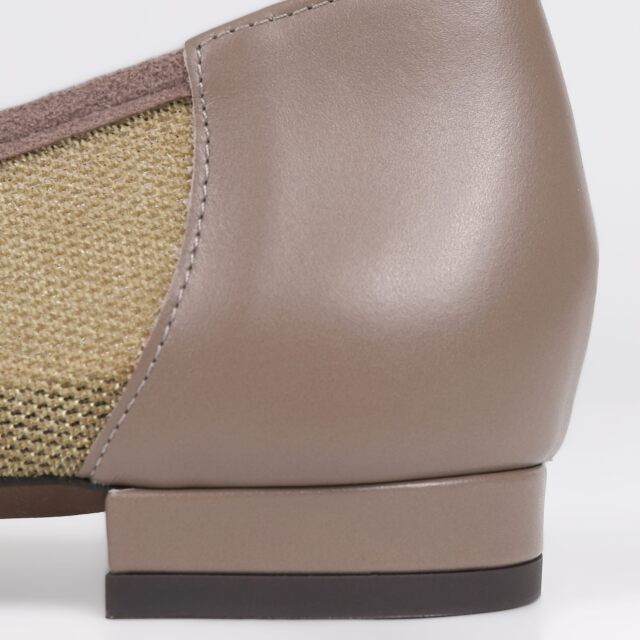 光沢のある起毛のメッシュ素材が秋の雰囲気も感じさせる一足になりました。まだ暑さが残る初秋は素足で履いて涼しく、秋深くなったら靴下でコーディネイトして長い期間履いて頂ける靴に仕上げました。