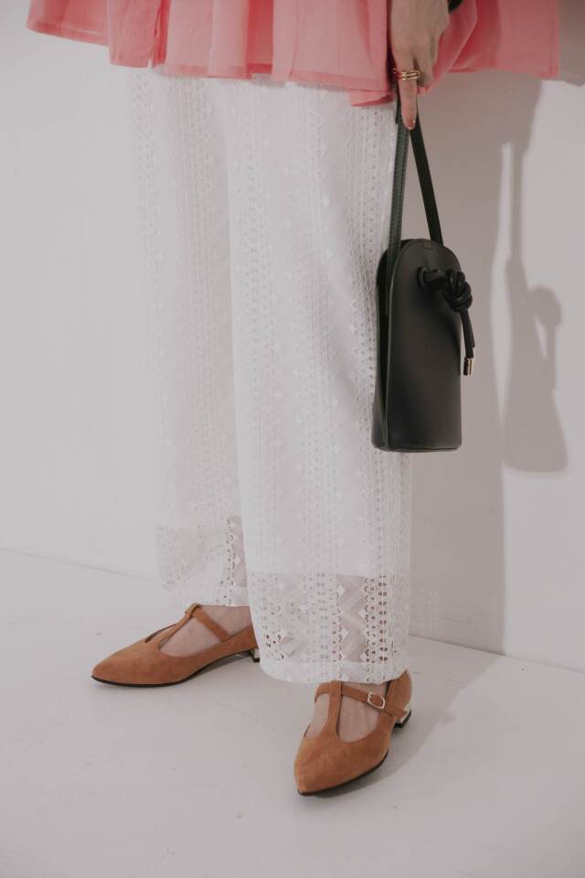 エレガンスになりやすいポインテッドのトンガリラストをフラットヒールにすることで履きやすくフェミニンに仕上げました。キラキラ素材のマイラーをアッパーに部分使いしたり、ヒール巻に使用したりすることでコーディネートを華やかにアップグレードしてくれる一足に。「レトロな色」はスエードとともに。スエード素材でマイルドに仕上げることで、やわらかな素材のボトムにもなじみよく感度を高められる靴になりました。