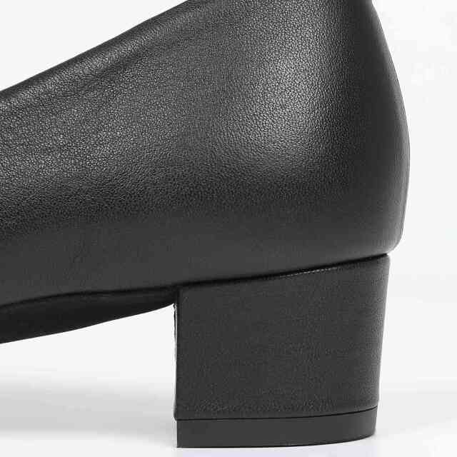 35mm高の履きやすいレディな靴を作りました。シンプルなデザインなだけにラインにこだわり、足がキレイに見えるようにしました。スカートはもちろん、パンツの裾から見えるトゥラインがスッキリと長めでカッコイイ一足です。