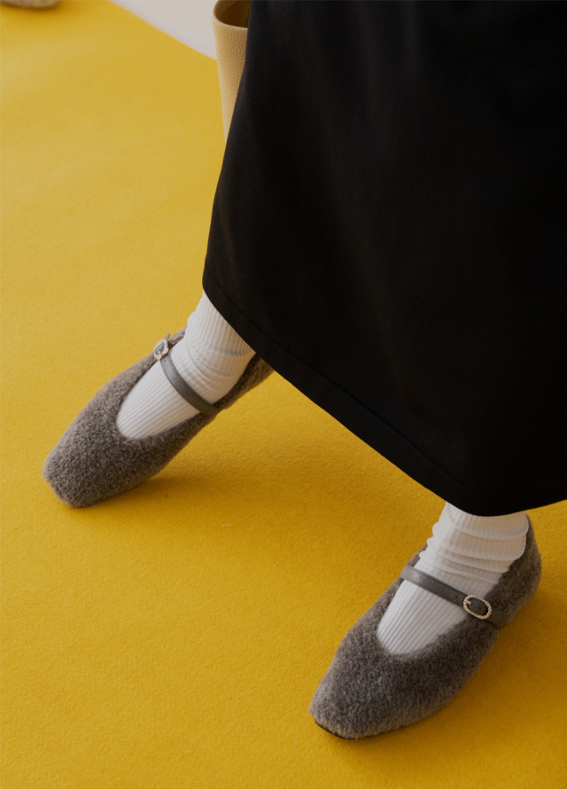 ボア使いのメリージェーンはコーディネートのアクセントに。パールの美錠もときめきポイントです。 土ふまずにフィットする中敷きが足裏をサポートしてくれます。ベルト部分はゴム仕様になっていて着脱もラクチンです。