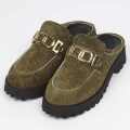 トレンドを抑えたデザインながら履き心地も追求したサボローファーです。04-2122の素材違い。同じデザインでもベロア素材で一気に個性的な雰囲気になります。 新しく採用したインソールは、土踏まずやかかとに厚みがあり足裏全体を支えてくれます。甲裏部分にはゴムが入っているので自分の甲にフィットしやすく、ボリュームソールでも軽くて屈曲性もあるのでサボなのに脱げにくく歩きやすくなっています。