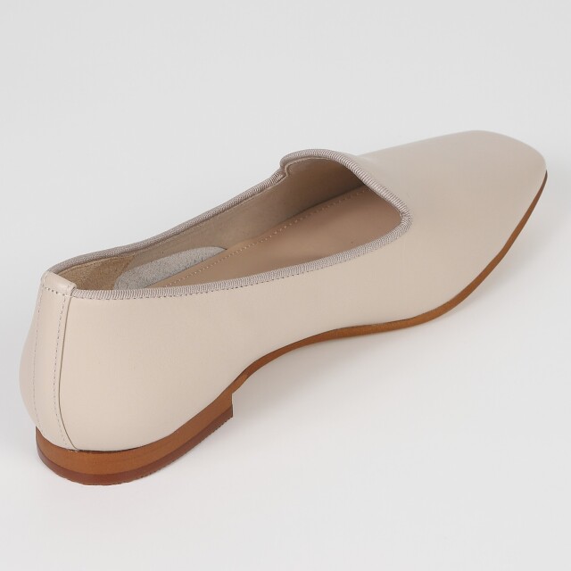 ソフトなレザーを使用し、深めの設計でどんな足にも合うようシルエットや履き心地にこだわりました。パンプスより履きやすく、ローファーよりすっきりとしたシンプルなオペラシューズです。