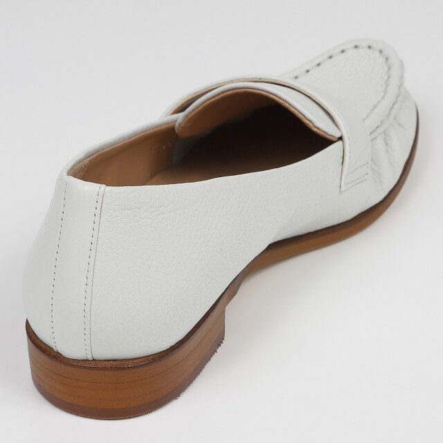 シボ感のあるレザーとギャザーをよせたディテールで柔らかさを表現したソフトローファー。ソフトな革を使用しているので足当たりは柔らかく、クッション性のあるインソールも入っていて、履き心地は抜群です。コーディネートのジャマにならないシンプルなデザインに仕上げました。