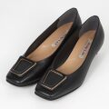 スクエア木型&ローヒールと見た目から履きやすそうなパンプス。上品なバックル飾りがオケージョンにもマッチしてくれます。