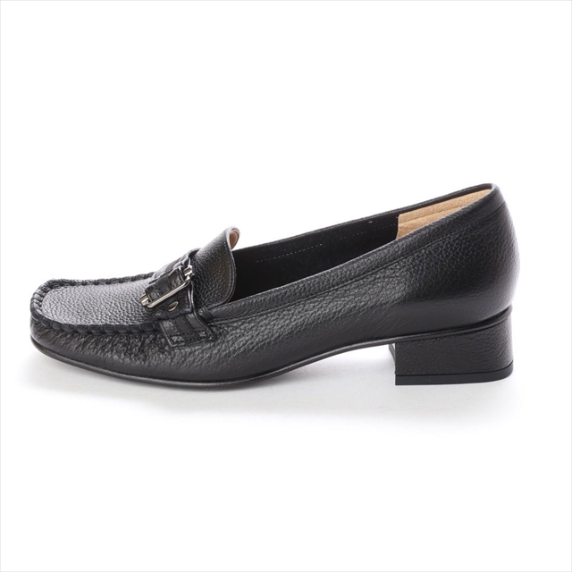 一部ライニングを取り払い、革本来の柔らかさと足馴染みの良さが自慢です。ちょこっとヒールがカジュアルになりすぎず、ちょうど良い上品さを演出。金具とエナメル素材のコンビネーションがアクセントになっています。