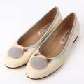 甘くなりがちなバレーシューズを上質な生地巻きバックル使いとニュアンスのあるキレイ色で程よく抜けのあるLADYな靴に。