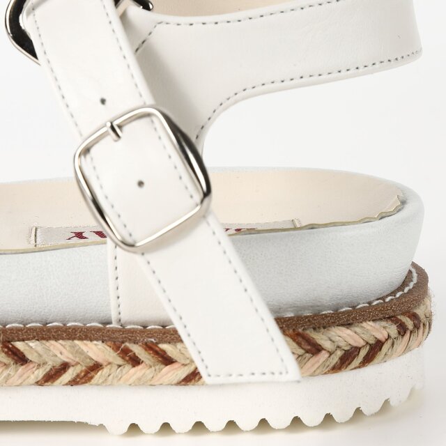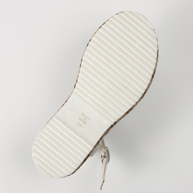 カラージュート巻きの厚底なので、程よいボリューム感で足元のトレンドを表現しました。