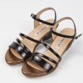 同系色でまとめたヌーディサンダルはコーディネートにも合わせやすく、ウエッジヒールで安定感も抜群な1足です。