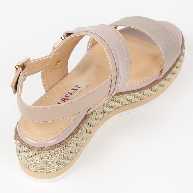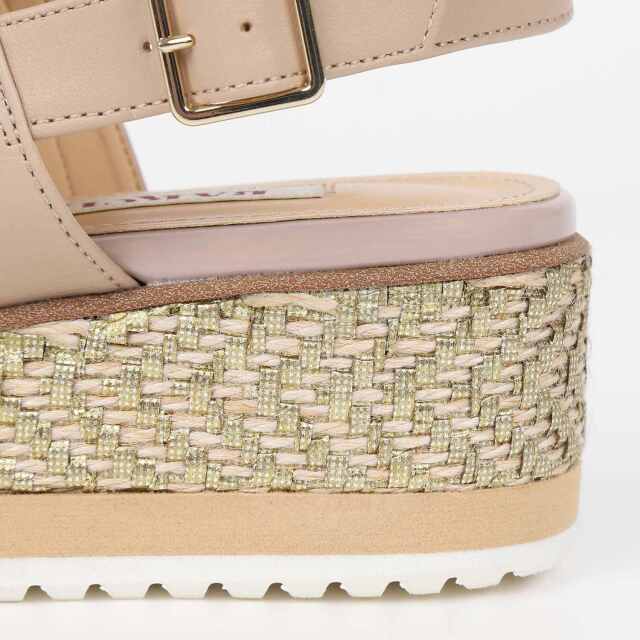 EVAの軽量厚底にメタリック糸を織ませた生地を巻いたソールはシンプルな中にキラッと光る上品さを。コーディネートにも合わせやすいベーシックカラーバリエーションでデイリー使い出来るサンダルに。