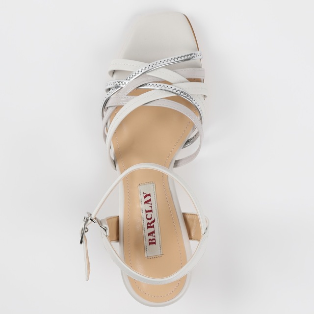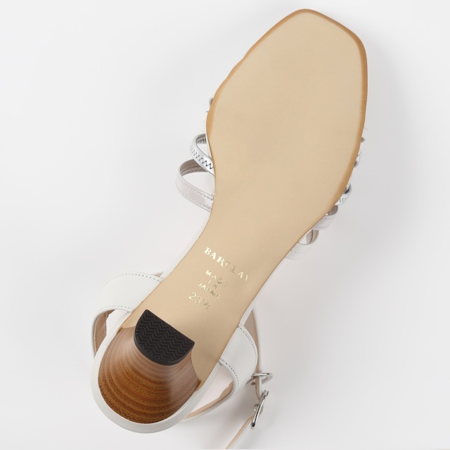 光る素材を織り交ぜたテープ使いで華奢でキレイ目なサンダルを作ってみました。テープに飾りステッチを施しひと味違う仕上がりに。テープ使いが足の形になじんでくれてフィット感が出るヒールなのに歩きやすいサンダルです。
