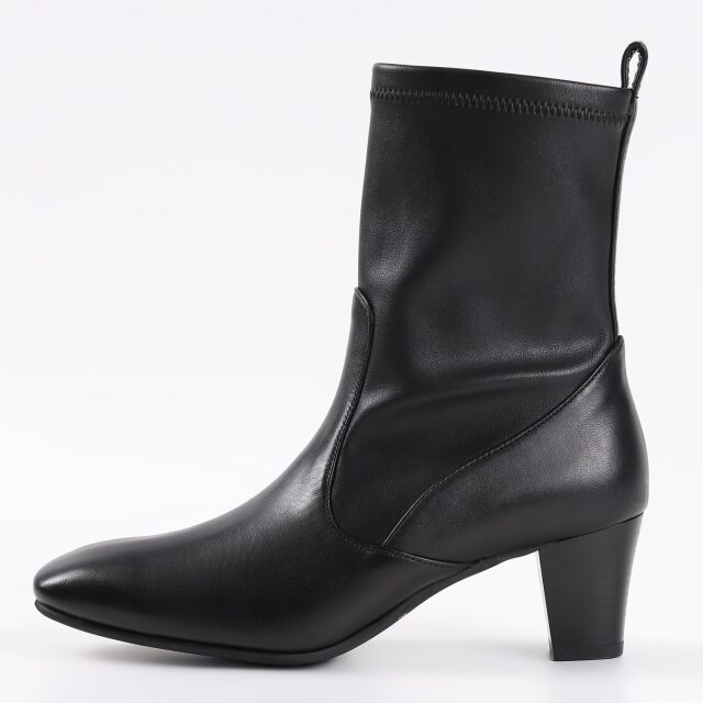 5.5cmヒールに細身のストレッチブーツはキレイなラインにこだだわって作製しています。内側にサイドファスナーがあるので、脱ぎ履き楽々!