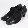 ファスナー無しでスポッと履けるブーティーです。ヒールの高さも55mmで高過ぎず、中敷下のフットベットがアーチをしっかりと支えてくれるので歩きやすく疲れ難い靴になっています。パンツスタイルの裾から見える感じも程よくスッキリとした印象に仕上げてくれます。