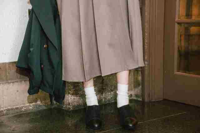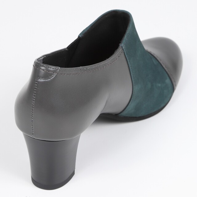 ファスナー無しでスポッと履けるブーティーです。ヒールの高さも55mmで高過ぎず、中敷下のフットベットがアーチをしっかりと支えてくれるので歩きやすく疲れ難い靴になっています。パンツスタイルの裾から見える感じも程よくスッキリとした印象に仕上げてくれます。