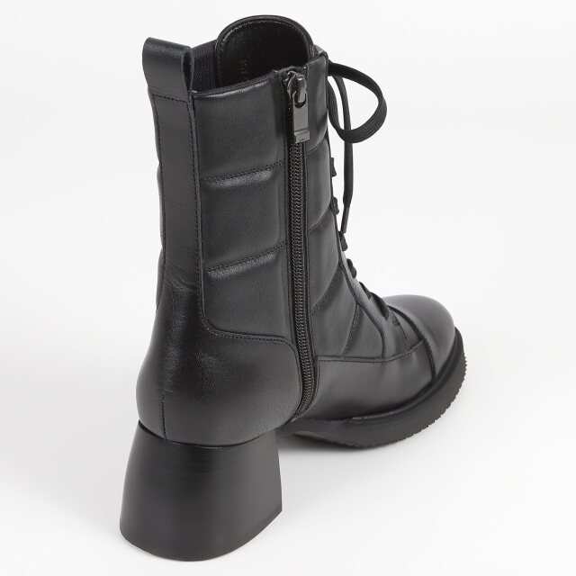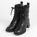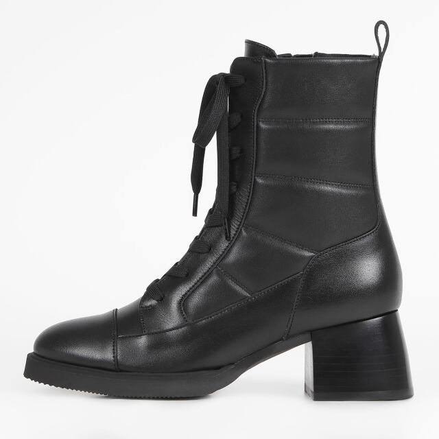 スタイルアップ効果が期待出来るヒールアップのブーツを作製しました。筒部のキルティング仕様でスポンジのフワフワ感と足当たりの柔らかさを分かりやすくしています。程よいボリューム感が足元に出ますので、スタイリングが決まります。