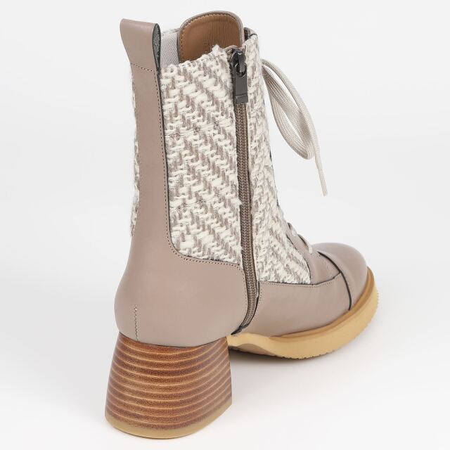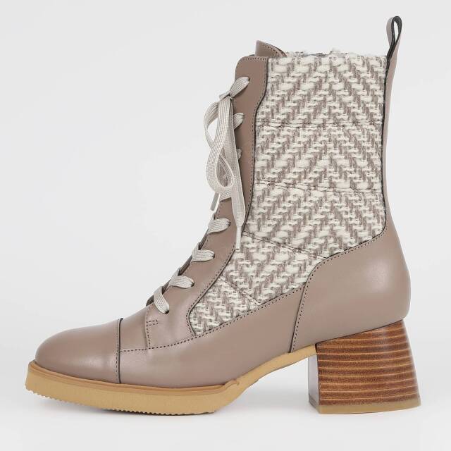 スタイルアップ効果が期待出来るヒールアップのブーツを作製しました。筒部のキルティング仕様でスポンジのフワフワ感と足当たりの柔らかさを分かりやすくしています。程よいボリューム感が足元に出ますので、スタイリングが決まります。