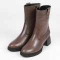 スタイルアップ効果が期待出来るヒールアップのブーツを作製しました。プレーンなデザインですが、ベルト回りのステッチワークで少しデザイン性をプラスしています。パンツにもスカートにも合わせやすい1足です。