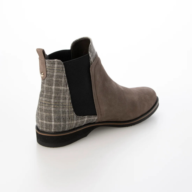 変形サイドゴアデザイン。底に効かせたベージュのラインがポイントになり重くならずスッキリした印象に。