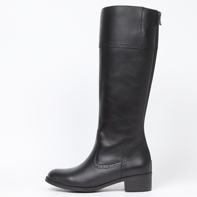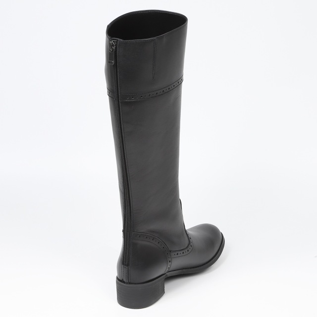 メダリオンを施したロングブーツはマニッシュな印象の一足です。