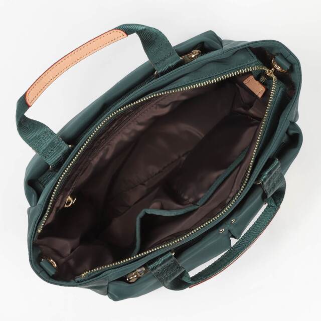 ショルダーベルト付きナイロンミニトートバッグ。 大きすぎず、小さすぎないサイズ感とシンプルなデザインは様々なシーンにオススメです。 開閉はファスナー式で中身をしっかり保護でき、マチもあるので収納力抜群です。