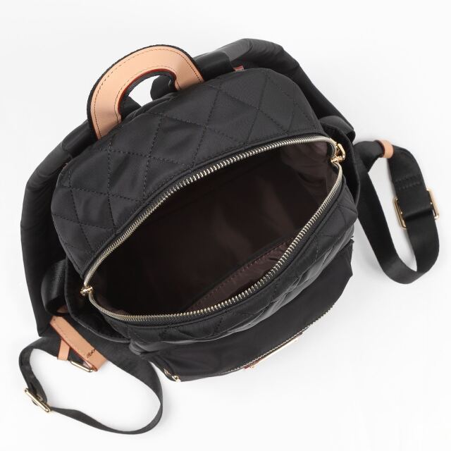 キルティングがおしゃれなナイロン素材のミニリュック。マチがあり、大きすぎず小さすぎない程よいサイズ感は大人のカジュアルコーデにオススメです。肩にあたる部分はクッション入りのベルトで、肩への負担も軽減してくれます。