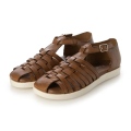 細めの革テープを編んだ、エスニック感のあるグルカサンダル。 オブリークトゥでカジュアルさもプラス。 ふかふかの中敷きクッションと返りの良いスポーティーなソールで、スニーカー感覚で履けちゃいます。