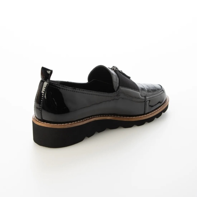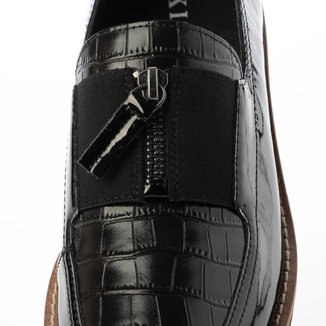 アニマル柄や型押しレザーなど、コンビネーションがオシャレなローファー。ボリュームソールでスタイルアップ効果も◎。アッパー材の一部には、革を再利用したアクションレザーを使用しています。