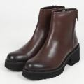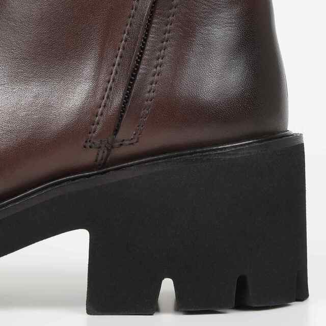 シンプルなデザインとボリュームのあるタンクソールでモードな雰囲気のショートブーツ。クッション入りのライニングで足あたりも柔らか。内側のファスナーで着脱も楽々です(外側は飾りです)。