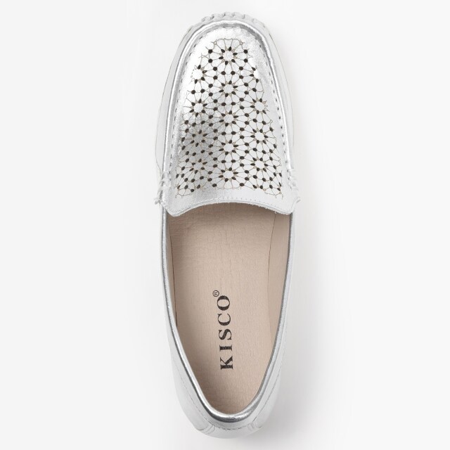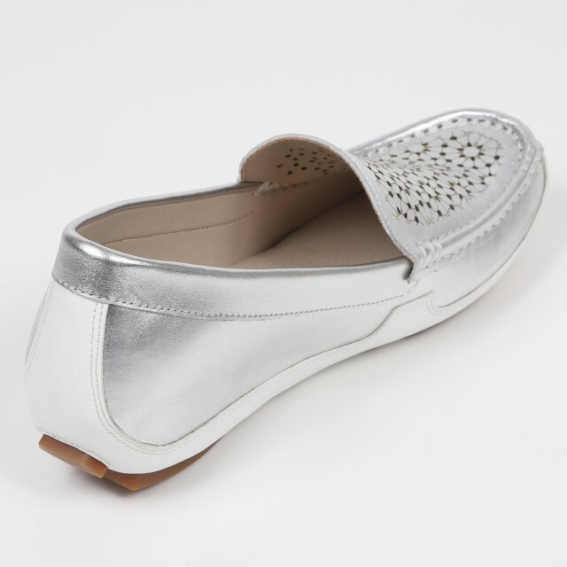 フラワーモチーフのレーザーカットで涼しげなモカシンシューズ。 柔らかなアッパー材が足に優しくフィットします。インヒール仕様なので、さりげないスタイルアップ効果も期待できます。