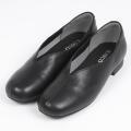 シンプルなVカットデザインに、モカ糸の飾りステッチでアクセントをいれて、カジュアルさをプラスしました。やや深めの履き口で肌が見えすぎず、オールシーズン活躍します。返りが良く、中敷きのクッション性も良いので、歩行時の足への負担を軽減。アッパーとライニングの間にはスポンジを入れているので、足当たりも柔らかです。