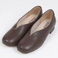 シンプルなVカットデザインに、モカ糸の飾りステッチでアクセントをいれて、カジュアルさをプラスしました。やや深めの履き口で肌が見えすぎず、オールシーズン活躍します。返りが良く、中敷きのクッション性も良いので、歩行時の足への負担を軽減。アッパーとライニングの間にはスポンジを入れているので、足当たりも柔らかです。