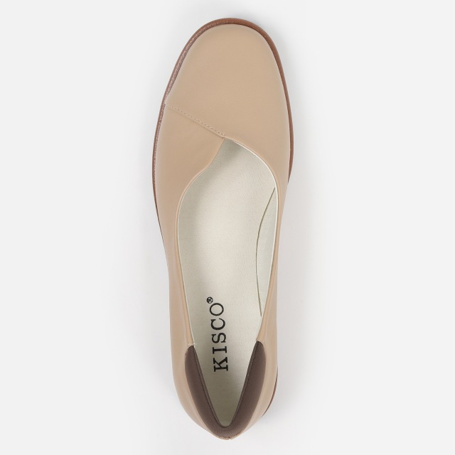 履き口のアシンメトリーなデザインでオリジナリティのあるカジュアルパンプス。深すぎず浅すぎない絶妙なバランスでオールシーズン活躍します。ヒールにスタック風のプリントを施しキチンと感をプラス。ゆったりとした木型を使用しているので、圧迫感がなくストレスフリーに履いていただけます。毎日履きたくなる1足です。