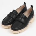 甲ベルトに飾りステッチを施し、クラフト感をプラスしたローファー。ソールの一部をシャークソールにしてエッジの効いた仕上がりにする事で、存在感のある雰囲気に。甲ベルトはゴム使用になっているので、フィット感を調整したあとでも着脱がスムーズです。