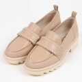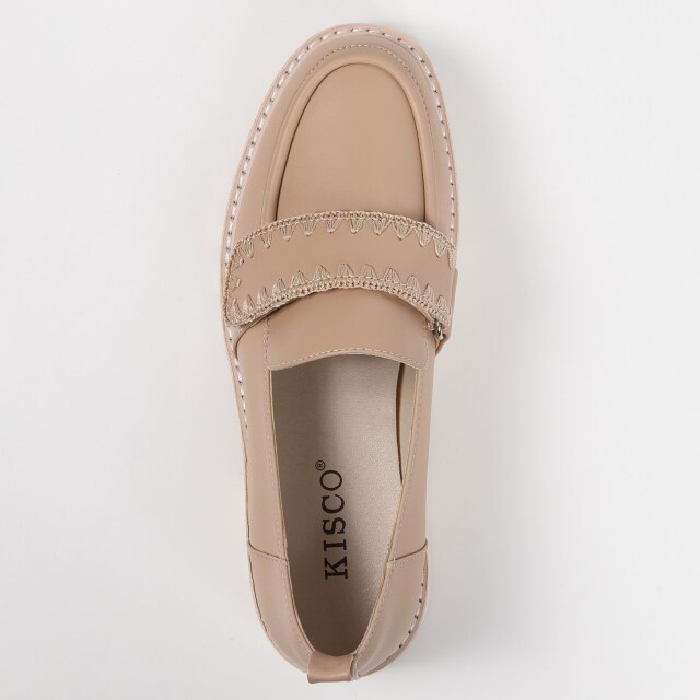 甲ベルトに飾りステッチを施し、クラフト感をプラスしたローファー。ソールの一部をシャークソールにしてエッジの効いた仕上がりにする事で、存在感のある雰囲気に。甲ベルトはゴム使用になっているので、フィット感を調整したあとでも着脱がスムーズです。