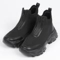 センターZIPがスポーティーなショートブーツ。伸縮性のあるニットで足に優しくフィットします。ラメ入りのGY色や、ゼブラ柄などコーディネートのアクセントになる色をご用意しました。中敷きやつま先裏には発熱素材生地を使用してるので、冬の寒さも安心です。