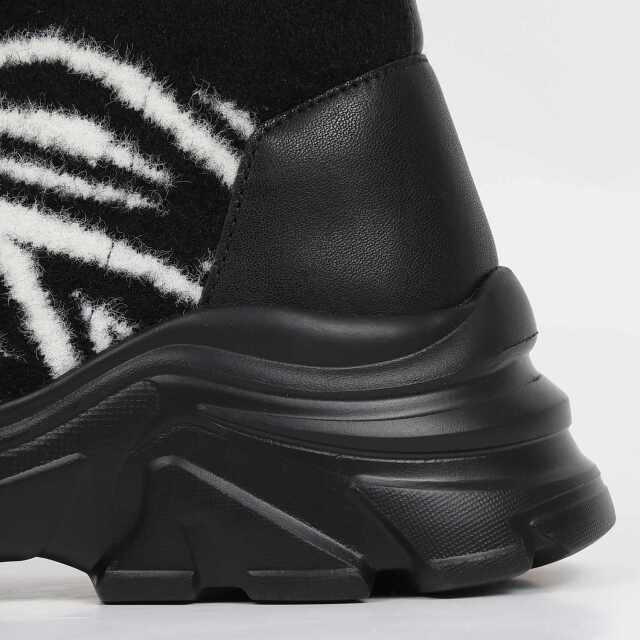 センターZIPがスポーティーなショートブーツ。伸縮性のあるニットで足に優しくフィットします。ラメ入りのGY色や、ゼブラ柄などコーディネートのアクセントになる色をご用意しました。中敷きやつま先裏には発熱素材生地を使用してるので、冬の寒さも安心です。