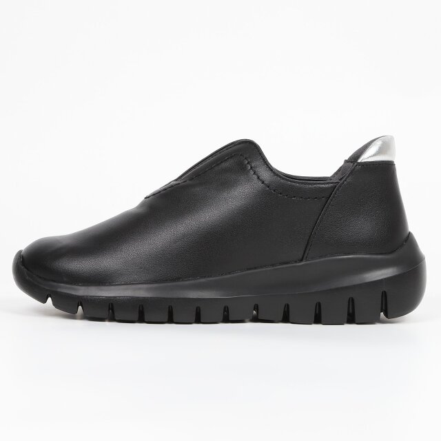 カジュアルシューズのデザインにスニーカーソールの組み合わせがおしゃれ。Vカットで足をスッキリ長く見せてくれます。ゆったりとしたサイズ感とクッション性のよいカップインソールでノンストレスな履き心地。軽量なので足に負担もかけません。