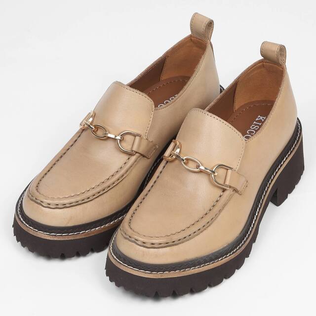 ステッチワークをふんだんに取り入れた、キスコのクラフト感を表現した1足。風合いのある革で高級感があります。