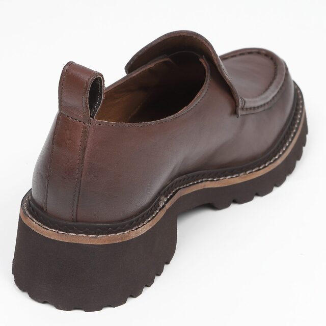 シンプルなデザインで飽きがこないデザインのモカシンローファー。BR、OKのピースは側面を塗装せず、革色が見えるようにする事で軽やかな印象に。ライニングにも本革を使い、足馴染みがとても良いです。