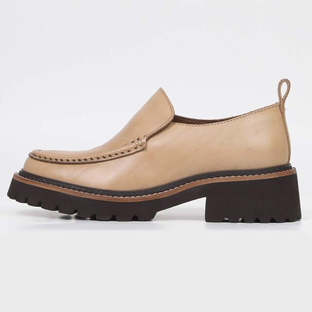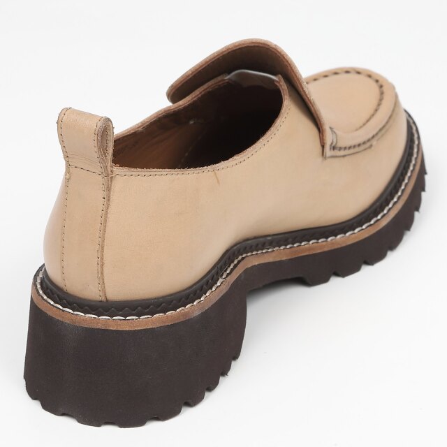 シンプルなデザインで飽きがこないデザインのモカシンローファー。BR、OKのピースは側面を塗装せず、革色が見えるようにする事で軽やかな印象に。ライニングにも本革を使い、足馴染みがとても良いです。