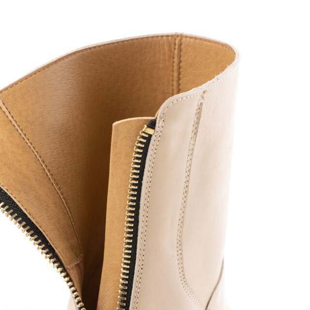 切りっぱなしの革や、さりげないモカステッチ使いがカジュアルなテイストのショートブーツ。アーモンドトゥで女性らしさもプラスしています。太目の6cmヒールで安定感があり、返りも良いのでヒールが苦手な方でも歩きやすい設計に。ソールには細かい溝が入っているので滑りやすい道でも安心です。