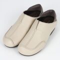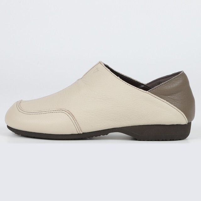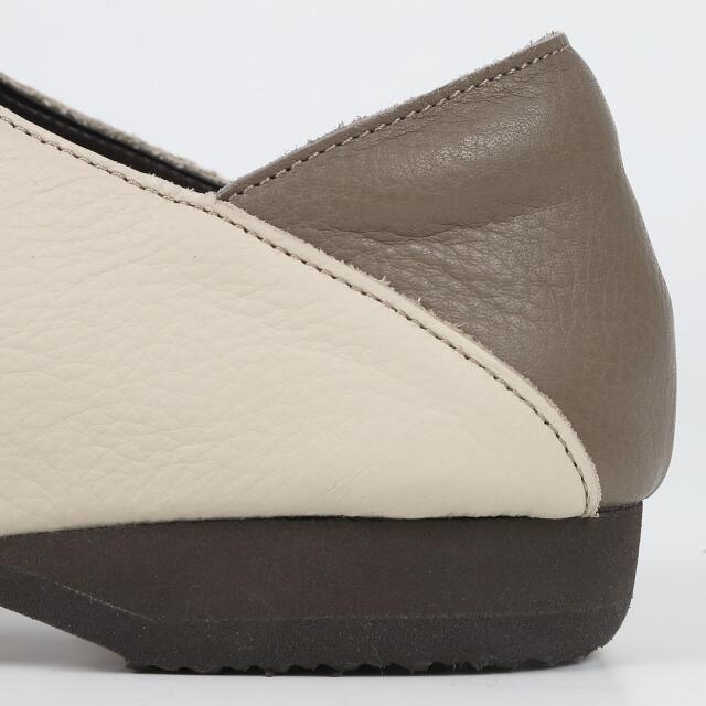 柔らかな天然皮革を使用し、軽量設計で長時間の歩行も快適にサポート。甲が深めのVカット仕様でスッキリとした印象に。かかとのパッドも柔らかく、やさしい足当たり。