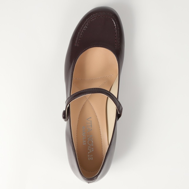 VITANOVAの定番人気商品(07‐4371)のお友達が誕生しました。胛を押さえるストラップにクルミボタンが女性の可愛らしい雰囲気で足元を飾ります。あえてカジュアルスタイルに合わせるのもお勧め。