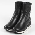 VITANOVA4Eの売れ筋ラストを使用。筒回りはストレッチ素材×スニーカーを合わせた「スニーカーブーツ」内側はジッパー使いで着脱しやすく、太さはピッタリとさせずソフトルーズにしているので足が細く見える設定にしています。4Eながらスマートに見え洒落感と足入れの良さがポイント。