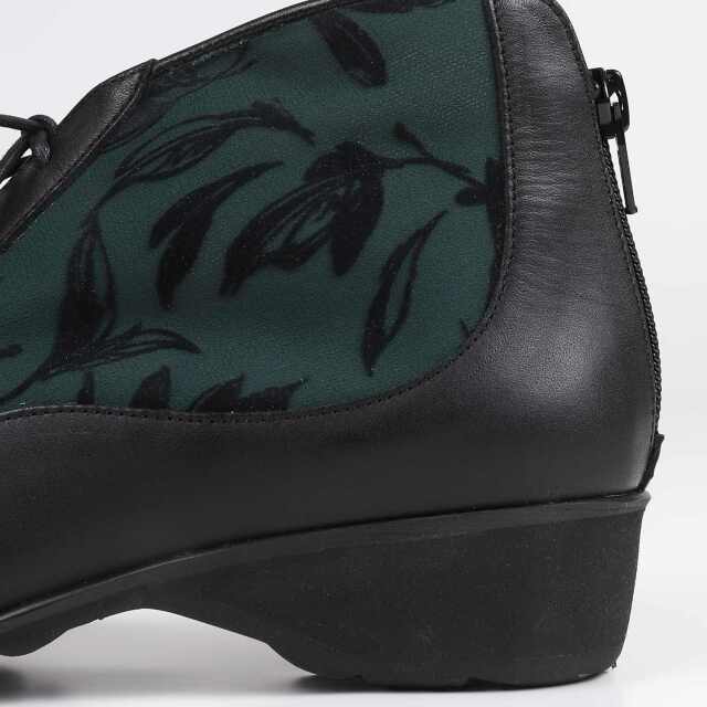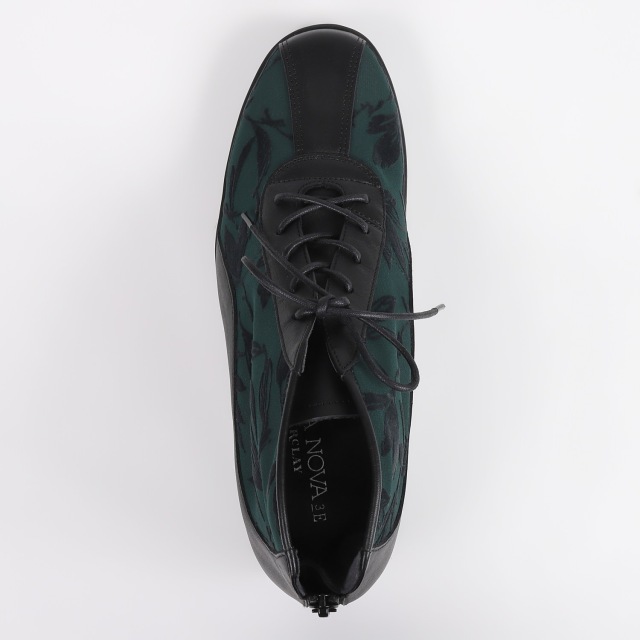 VITANOVA軽量底シリーズ。梨地素材にリーフ柄のフロッキープリントで程よい抜け感を出しています。くるぶしを覆う絶妙な丈感が、ボトムを選ばずにコーディネートが楽しめます。