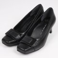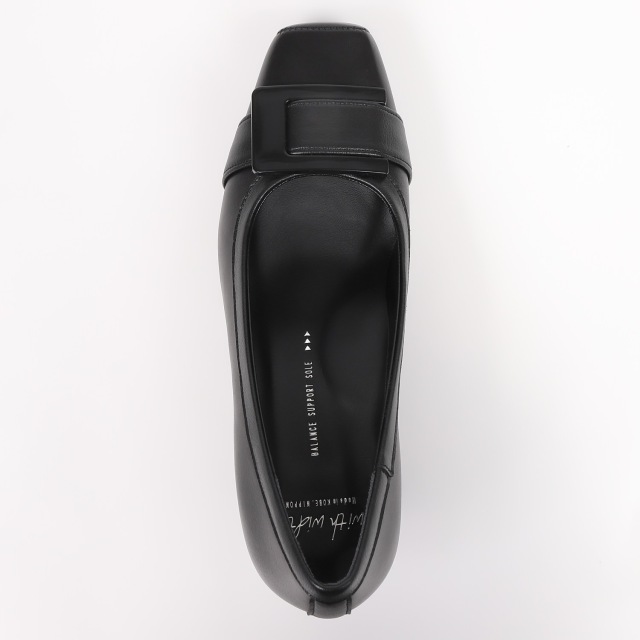 フロントのバックルがポイントのデザインパンプスです。左右非対称リフトのヒールを採用。快適な履き心地。爪先にウレタン裏を使用し、中敷には高反発ウレタンとアーチクッションの組み合わせでクッション性のあるコンフォートシューズです。