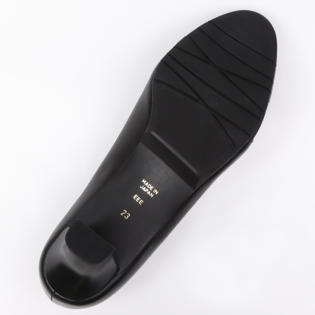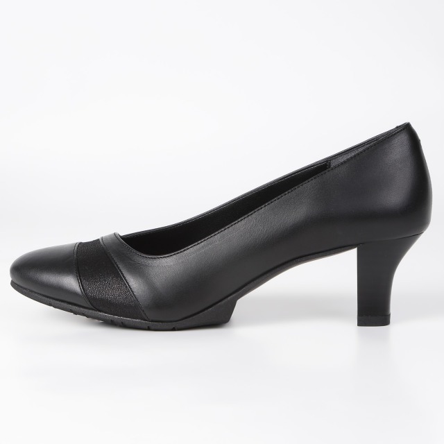 足を美しく見せてくれる甲のカッティング。ほんのり光沢のある、同色系の異素材のコンビがポイントに。売れ筋の定番ヒールとオリジナルソールで履きやすさを実感頂けます。