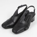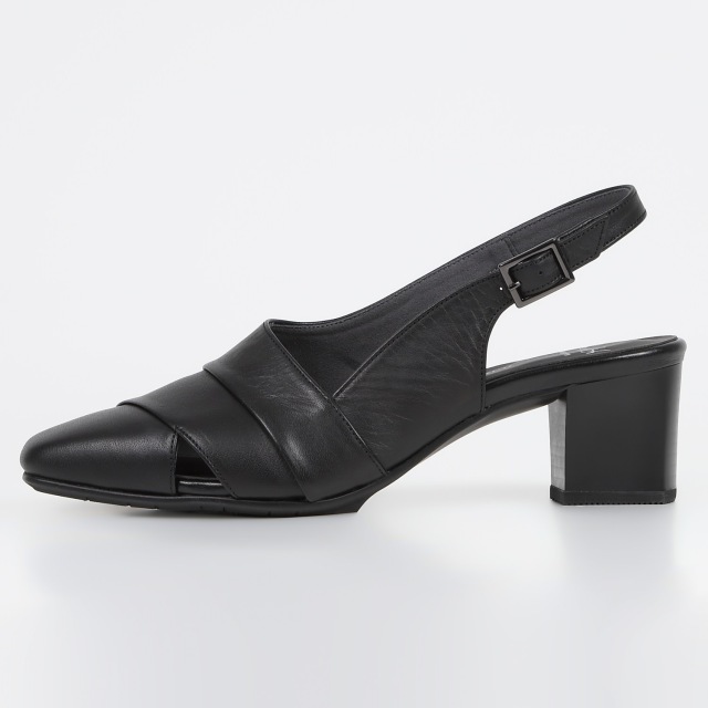 アシンメトリーな履口ライン、深めで脱げにくく、抜け感のあるバックバンド。梅春、初秋など季節の変わり目にも活躍します。モード感のあるヒール形状です。