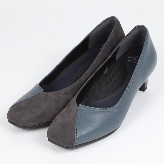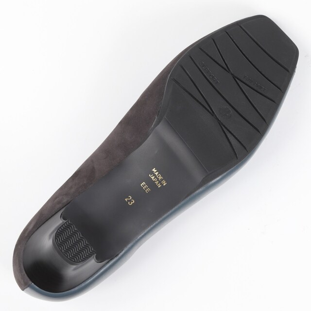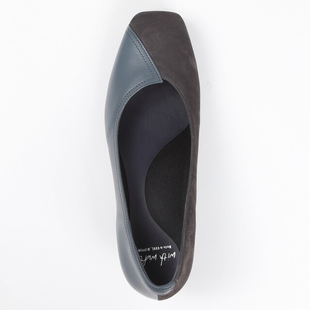 with widthで人気の木型を使用し、モードな雰囲気に仕上げました。 インソールには柔らかいクッションを取り入れ、優しく足をサポート致します。 「with width」はパンプスがグラつきやすく苦手だという女性のため、着用時の安定感を追求して開発したオリジナルのアウトソール(特許取得)がポイントのブランドです。