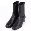 本革に見劣りしないストレッチ合皮スムースを使用し、よくある足にピタピタなストレッチブーツではなく、ほどよい余裕で足を細く見せ、ストレッチ性により着用時や歩行時にストレスがないことを目指したミドルブーツに仕上げました。